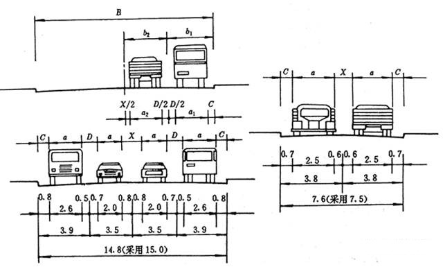1).居民區級道路:道路紅線之間的道路各項用地寬總和。