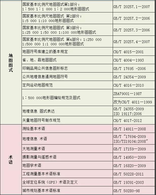 測繪專業(yè)相關(guān)標(biāo)準(zhǔn)大全