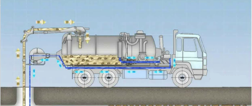 使用泥漿泵將檢查井內污水排出至井底淤泥。將需要疏通的管線進行分段,分段的辦法。根據管徑與長度分配,相同管徑兩檢查井之間為一段。