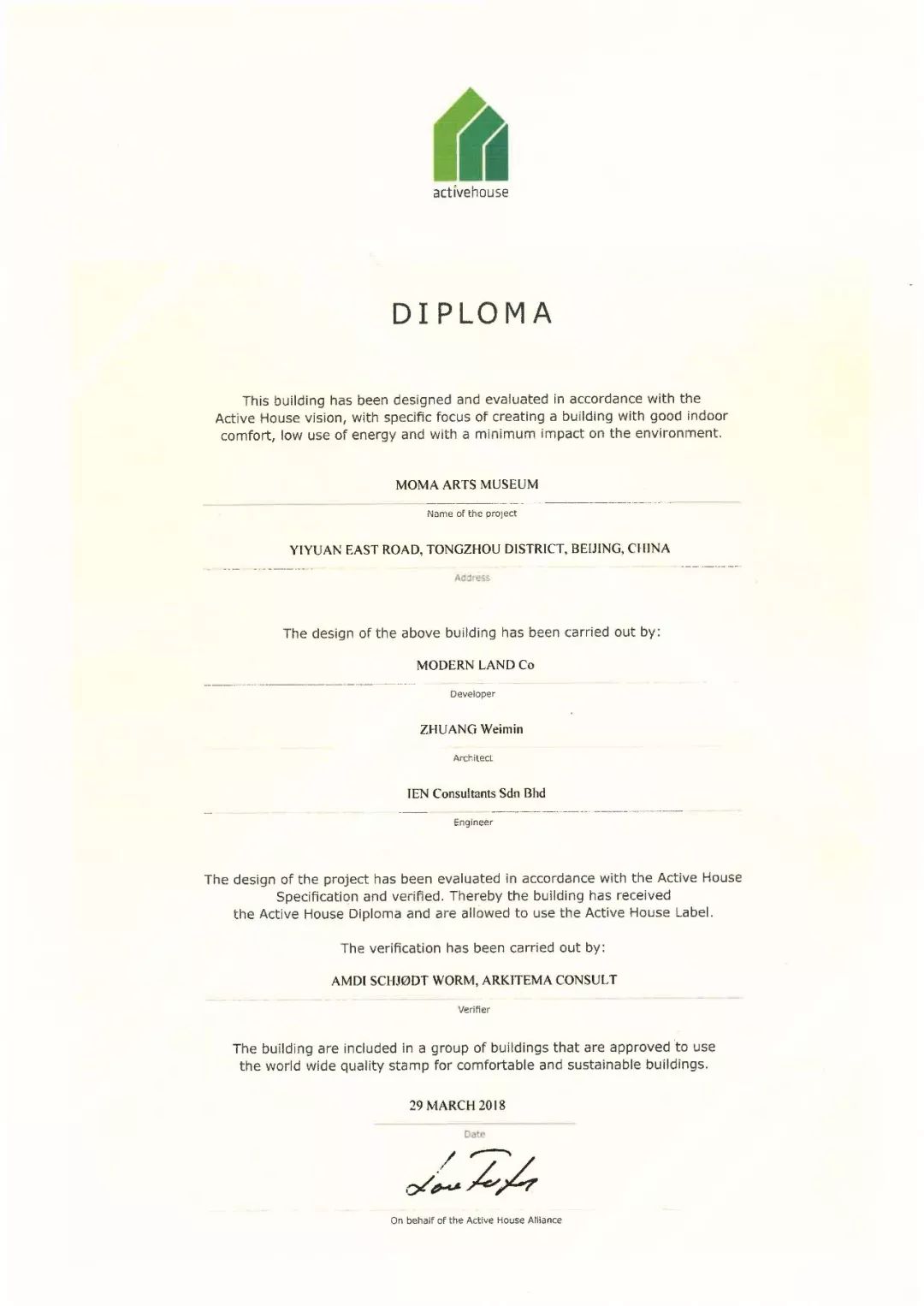 清華大學(xué)建筑設(shè)計研究院項目首次獲得主動式建筑ACTIVE HOUSE國際聯(lián)盟認(rèn)證