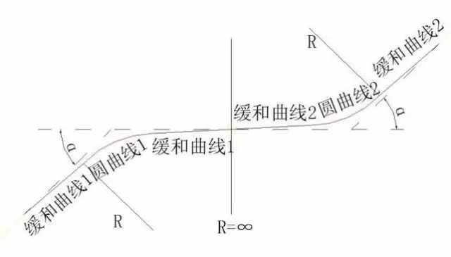 直線+緩和曲線+圓曲線+緩和曲線+直線,這種線型和地鐵平曲線里的大部分線型是一樣的。
