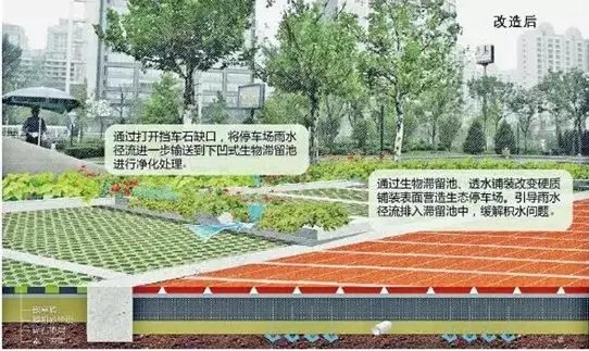 生態停車場是一種具備環保、低碳功能的停車場,具有高綠化、高承載的特點,同時使用年限也長于傳統停車場,生態停車場可與生物滯留池及植草溝結合設計。
