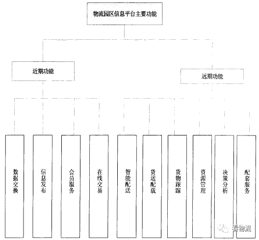 根據(jù)物流園區(qū)的作業(yè)、管理內(nèi)容、運(yùn)作需要等方面來看,物流園區(qū)信息平臺應(yīng)具備以下的一些主要功能,如圖所示 按照分步實(shí)施,循序漸進(jìn)的原則,把其分為近期功能和遠(yuǎn)期功能兩部分 先建設(shè)近期功能項(xiàng)目,再建設(shè)遠(yuǎn)期功能項(xiàng)目這些項(xiàng)目涉及現(xiàn)代物流寬帶網(wǎng)絡(luò)系統(tǒng)、物流業(yè)務(wù)信息系統(tǒng)、現(xiàn)代物流園區(qū)內(nèi)部管理信息服務(wù)系統(tǒng)及商務(wù)信息系統(tǒng) .