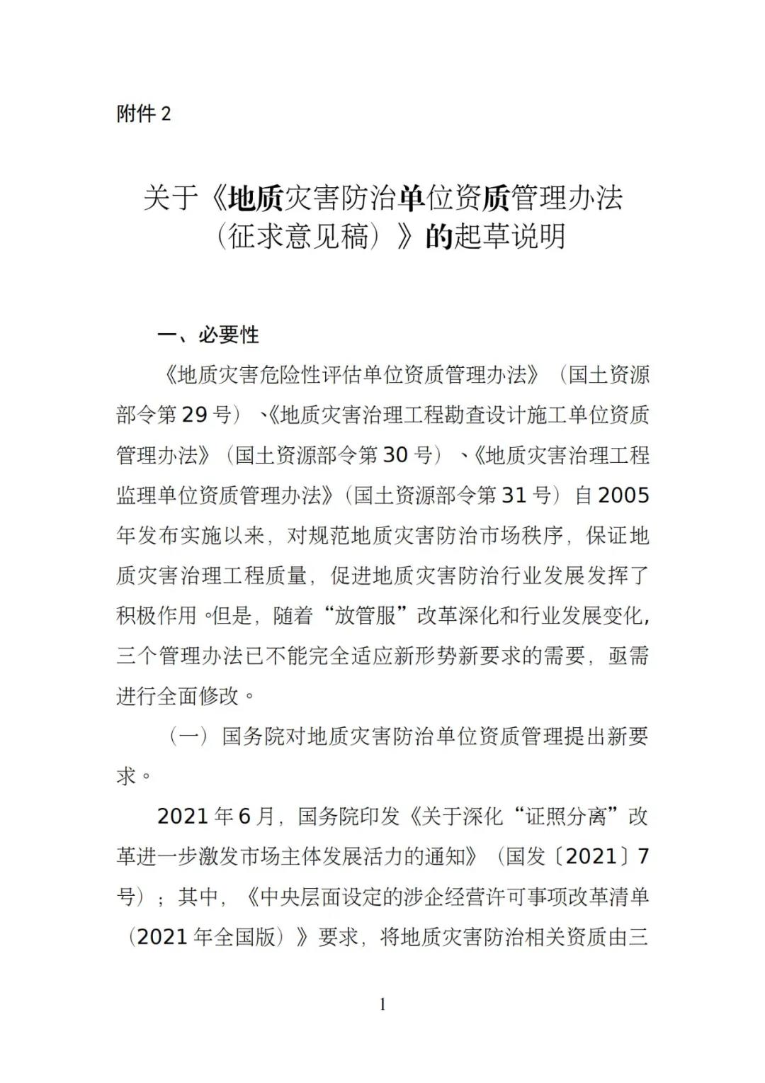 1.地質災害防治單位資質管理辦法(征求意見稿)2.關于《地質災害防治單位資質管理辦法(征求意見稿)》的起草說明