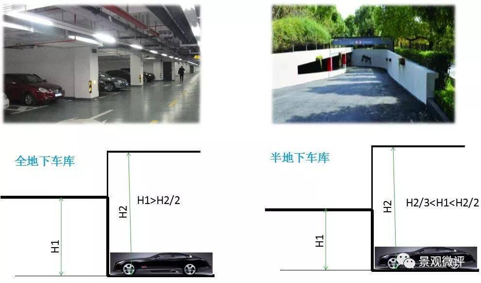 例如:山地多選擇半地下車庫,相對平坦地形多選擇全地下車庫。