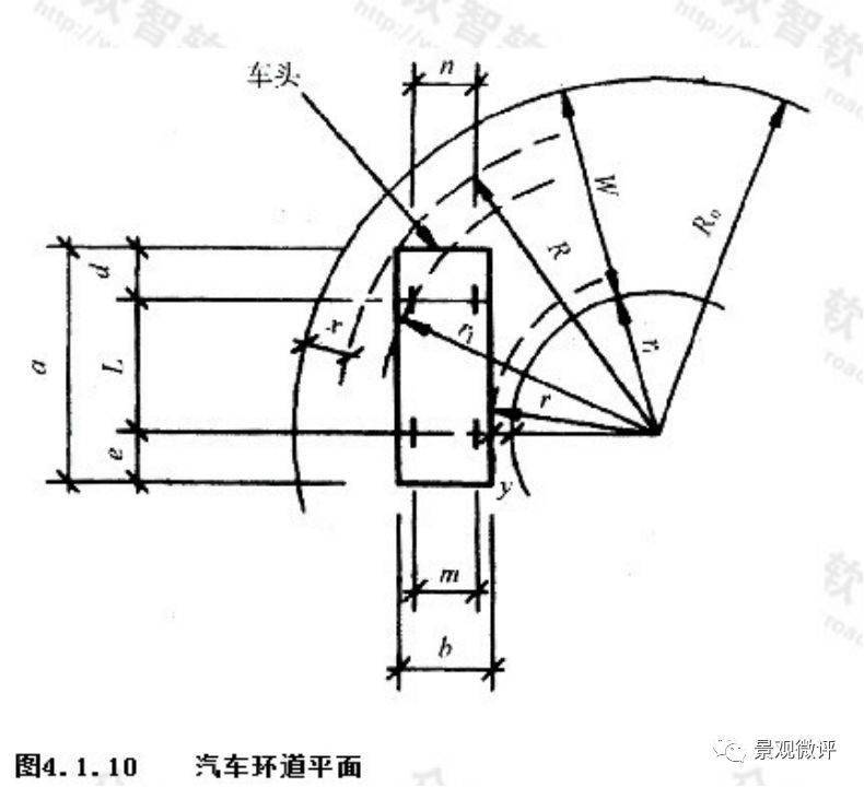 回轉軌跡表明當汽車回轉狀態下的環道內外半徑不同,則最小道寬尺寸也將不同。