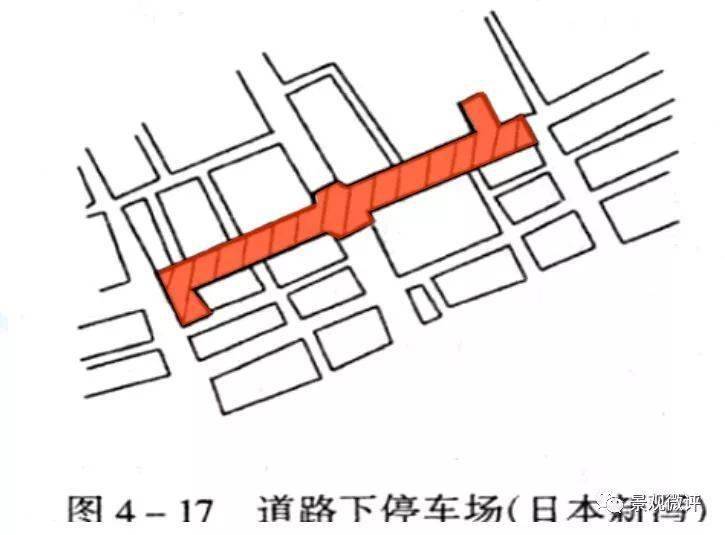 曲線形坡道占地面積小,適用于狹窄地段,視線效果差,進出不太方便,圖4-36(d)、(e)