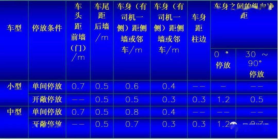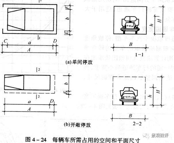 如果實際存車同上述尺寸存在著差異,則必須按實際車型進行設計。